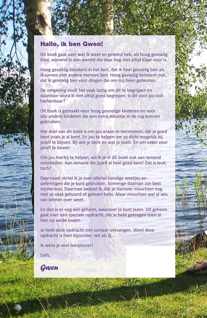 Het boek ‘Hallo, ik ben Gwen’ is in eerste instantie geschreven voor hooggevoelige en anders lerende jongeren en voor alle jongeren die een steuntje in de rug kunnen gebruiken.