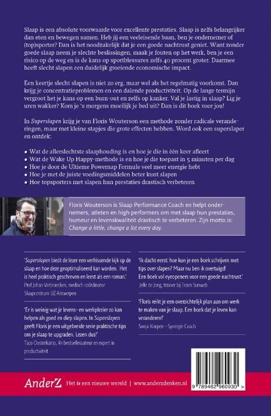 Goed slapen is heel erg belangrijk om goed te kunnen functioneren, toch is kwalitatief goed slapen voor heel veel mensen niet vanzelfsprekend. Huidige schattingen zeggen dat ongeveer 25% van de mensen kampt met slaapproblemen. Floris Wouterson, ondernemer, slaapexpert en ervaringsdeskundige, heeft het boek SuperSlapen geschreven. Wie is Floris Wouterson? En wat kan je van het boek “SuperSlapen” verwachten?